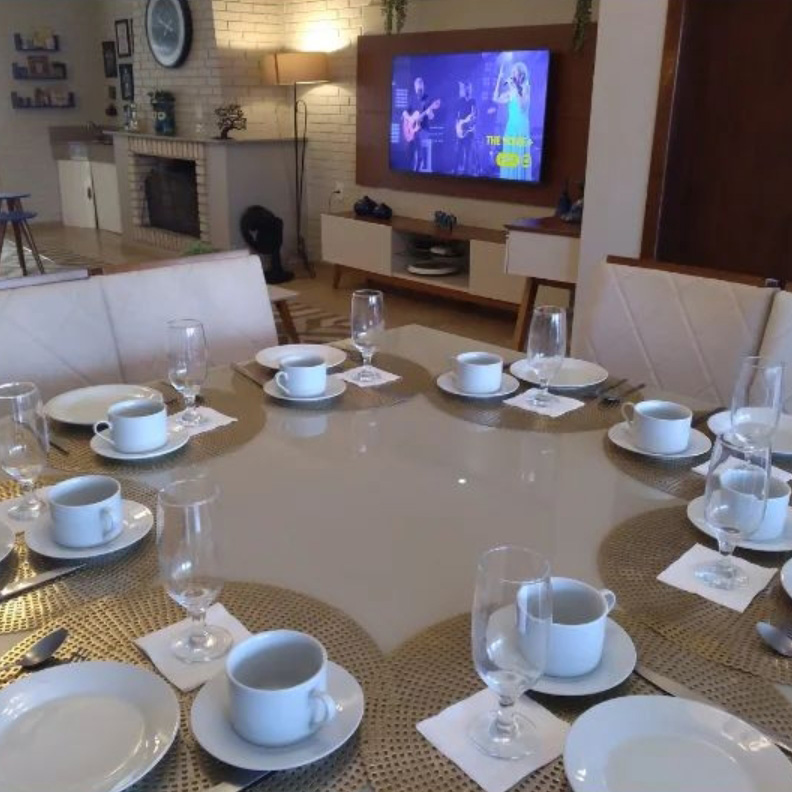Dispomos de pátio grande com área verde para você que gosta de tomar um chimarrão ao ar livre ou simplesmente saborear uma cervejinha na sombra após um dia cansativo de trabalho.